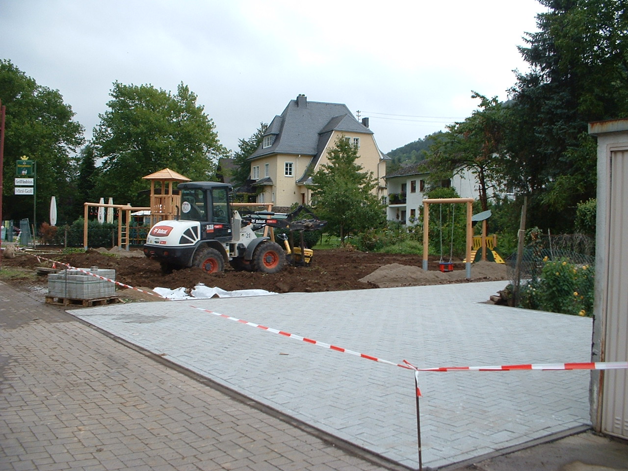 Sitzfläche am Spielplatz Parkfläche am Spielplatz Parkfläche mit Zufahrt